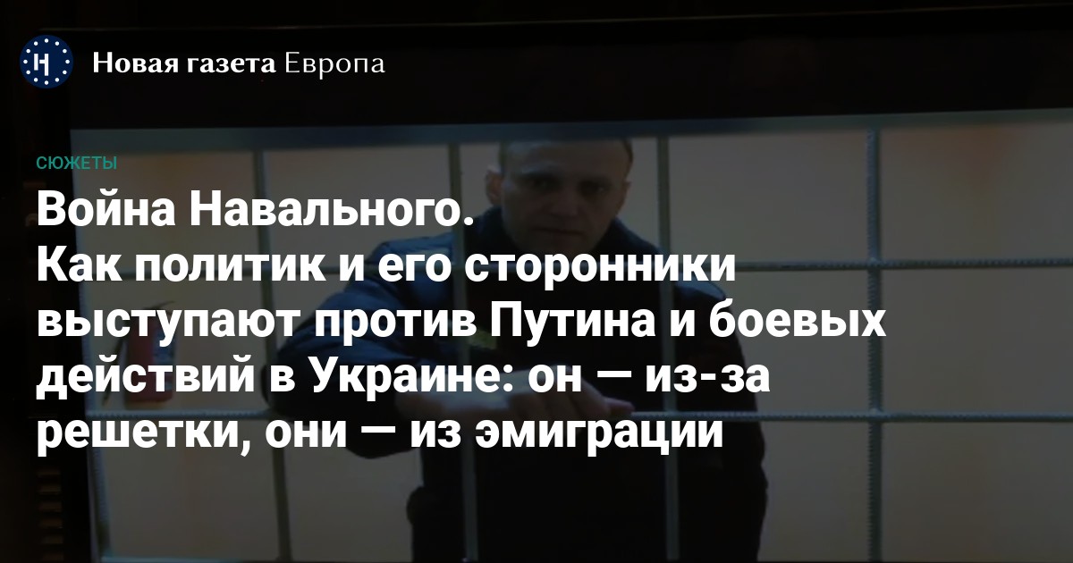 Сам Алексей Навальный активно участвовать в сопротивлении сейчас не может по объективным причинам: с 2021 года он находится в колонии после того как суд, по ходатайству ФСИН, заменил его условный срок по делу «Ив Роше» на реальный. С тех пор количество уголовных дел против политика только продолжает увеличиваться (сейчас против политика открыто шесть уголовных дел), а предполагаемые сроки его содержания под стражей — только увеличиваться. Уже после начала войны, 22 марта Лефортовский суд Москвы на выездном заседании в колонии №2 в Покрове Владимирской области приговорил Навального к девяти годам колонии строгого режима, признав его виновным в особо крупном мошенничестве при сборе пожертвований от сторонников и неуважении к суду при рассмотрении дела о клевете на ветерана. После этого политика отправили в колонию строгого режима — ИК-6, которая находится в поселке Мелехово и славится пытками заключенных. Условия содержания политика там постоянно ухудшают: его то и дело отправляют в штрафной изолятор, а свидания с адвокатами усложняют до невозможности.