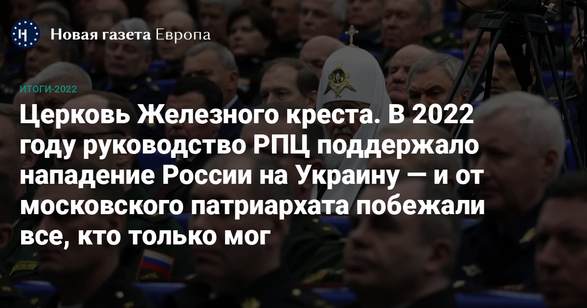 Современная Московская патриархия стала плодом «конкордата», заключенного 4 сентября 1943 года Сталиными с тремя «красными» митрополитами — Сергием, Алексием и Николаем. В начале своей истории эта организация усердно воспевала «Богоданного вождя», потом была инструментом «миролюбивой внешней политики» СССР, религиозно оправдывая тоталитарную идеологию коммунизма. С таким историческим багажом РПЦ вошла в эпоху Путина, апофеозом которой стал 2022-й. И если предыдущий патриарх Алексий II, возглавивший РПЦ в перестроечные времена, позволял себе элементы самостоятельности, протестуя против первой чеченской войны, то нынешний патриарх Кирилл ни на миллиметр не отклоняется от «генеральной линии». Тезис Путина о том, что россияне, погибшие на войне, «попадут в рай», Кирилл развил в своей проповеди этой осенью. Он заверил, что гибель на фронте «смывает все грехи, которые человек совершил», это самая прямая дорога в рай. Не исполнение заповедей, не молитва и пост, не дела милосердия…