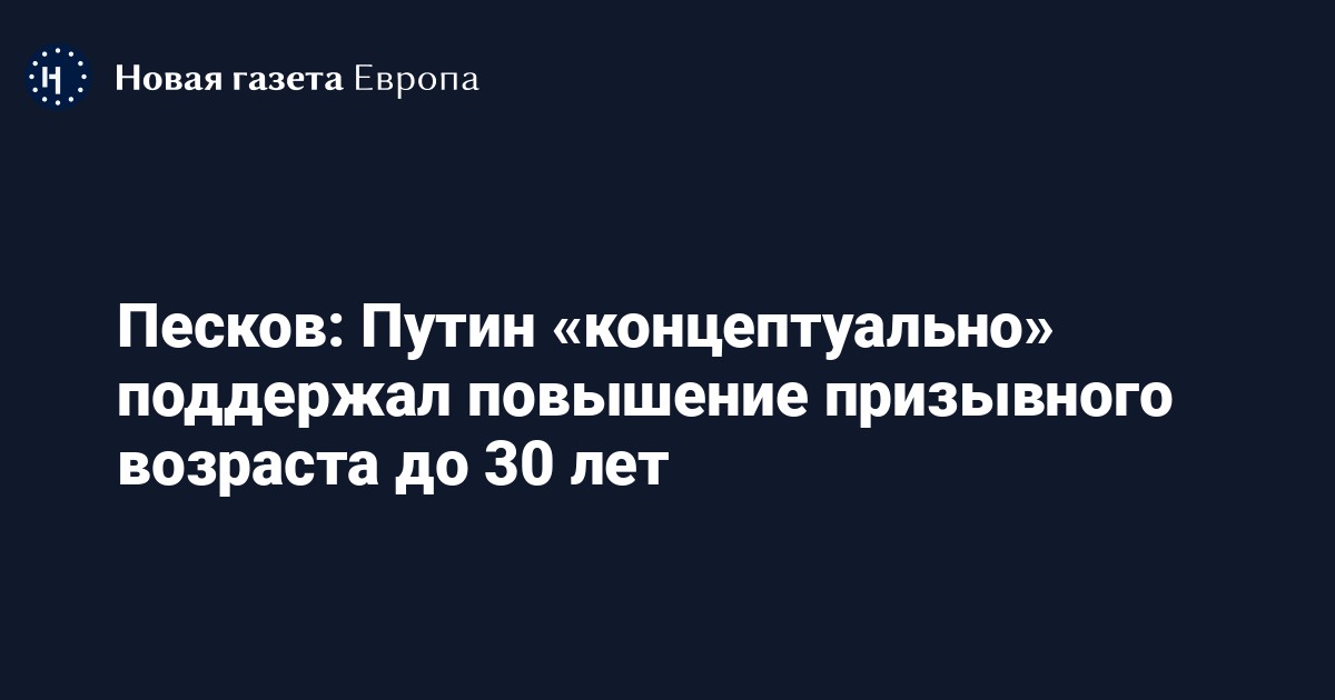 Президент России Владимир Путин поддержал идею повысить предельный возраст призыва с 27 до 30 лет. Об этом заявил пресс-секретарь президента Дмитрий Песков, его слова приводит ТАСС.
