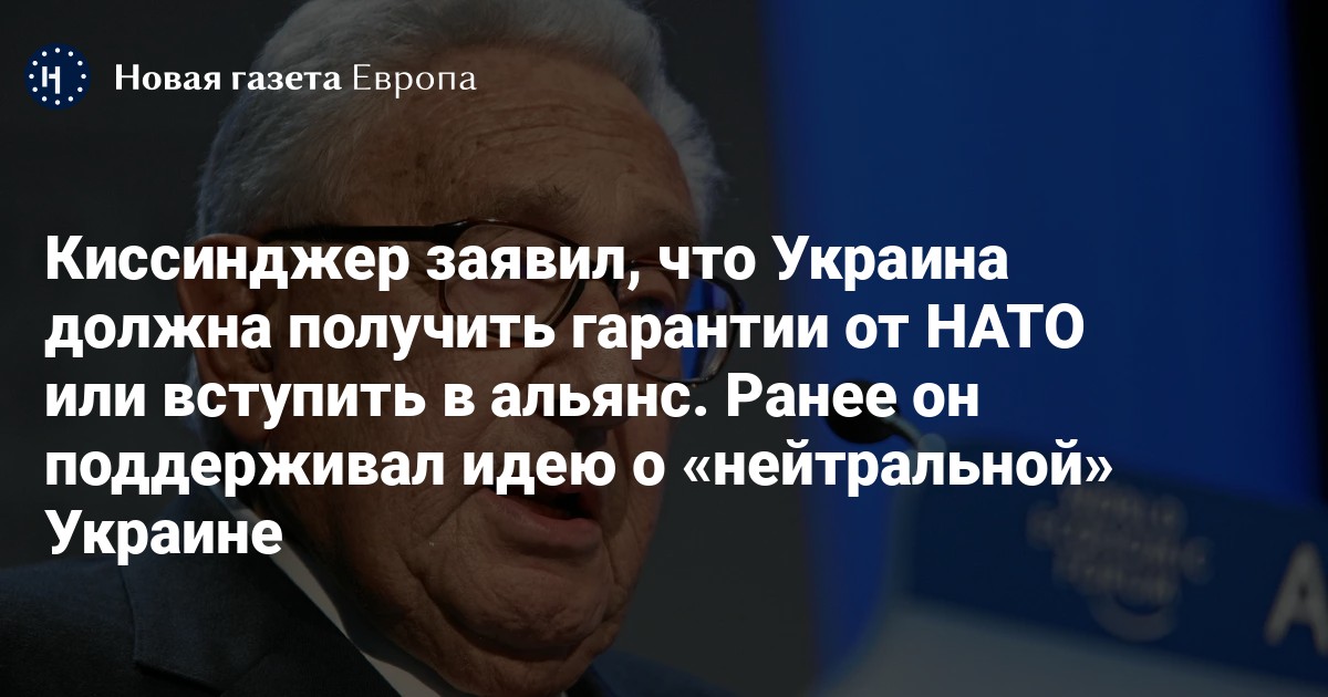 «До этой войны я был против членства Украины в НАТО, потому что боялся, что начнется именно тот процесс, который мы наблюдаем сейчас. Теперь, когда этот процесс достиг такого уровня, идея нейтральной Украины в этих условиях уже не имеет смысла. В конце… она должна получить гарантии от НАТО, в какой бы форме НАТО их ни предоставила. Теперь вступление Украины в НАТО приемлемо», — сказал он (цитата по РБК).