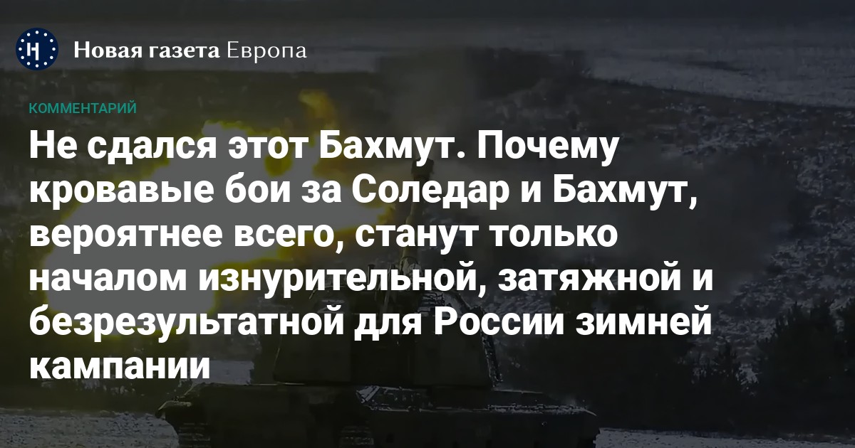 Декабрь 2022 — январь 2023 года стали прелюдией для зимней кампании в Украине: под Новый год ВСУ с помощью ракетных систем HIMARS уничтожили «пункт временной дислокации» российских войск в Макеевке, убив, по разным данным, до 200 солдат и офицеров противника, в Донбассе все еще идут ожесточенные бои за Бахмут и Соледар, и как итог — мы видим перестановки в командовании Объединенной группировки войск «СВО». Контрапунктом этой прелюдии стали события на бахмутском фронте. Военный аналитик Юрий Федоров по просьбе «Новой газеты Европа» разобрался, какие сценарии сегодня могут развиваться на донецком фронте, и как это повлияет на состояние противоборствующих сторон.