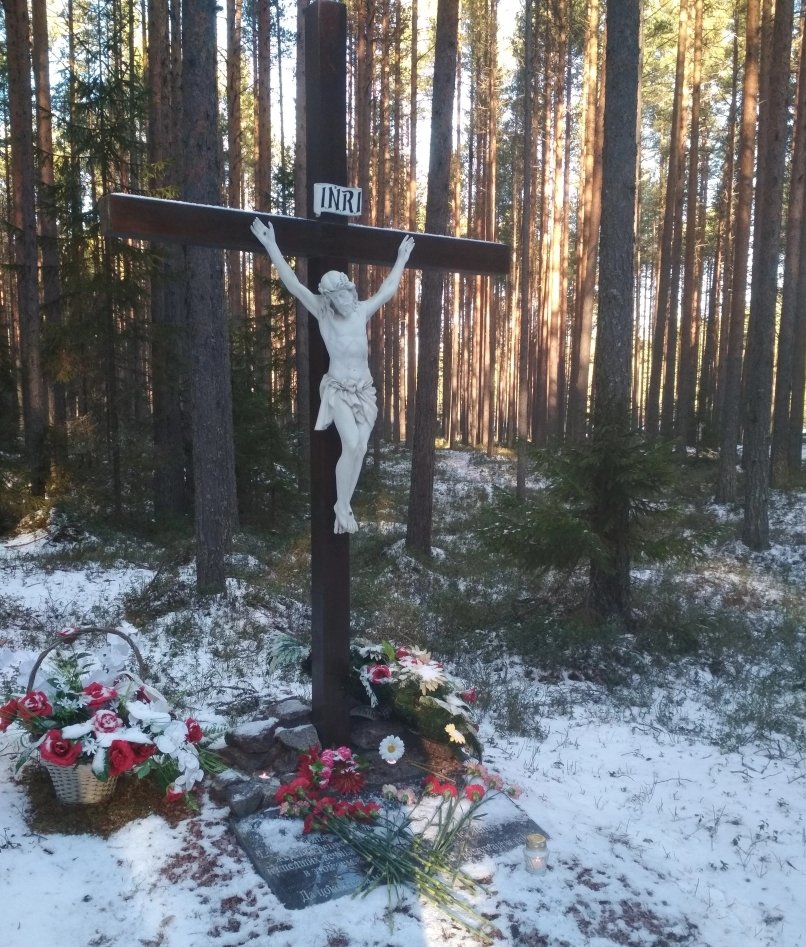 возле Петрозаводска, найденное трудами Юрия Дмитриева и его коллег, и возложил там цветы. Польская делегация обнаружила, что в Красном Бору кто-то совершил акт вандализма. Так, не был обнаружен католический крест, стоявший там с 2016 года. Очевидцы рассказали «Новой газете», что крест был выкопан с корнем, они нашли лишь осколки фигурки Иисуса Христа; также не было поминальной плиты из черного мрамора с надписью. Остались лишь камни, которым был обложен крест у основания.