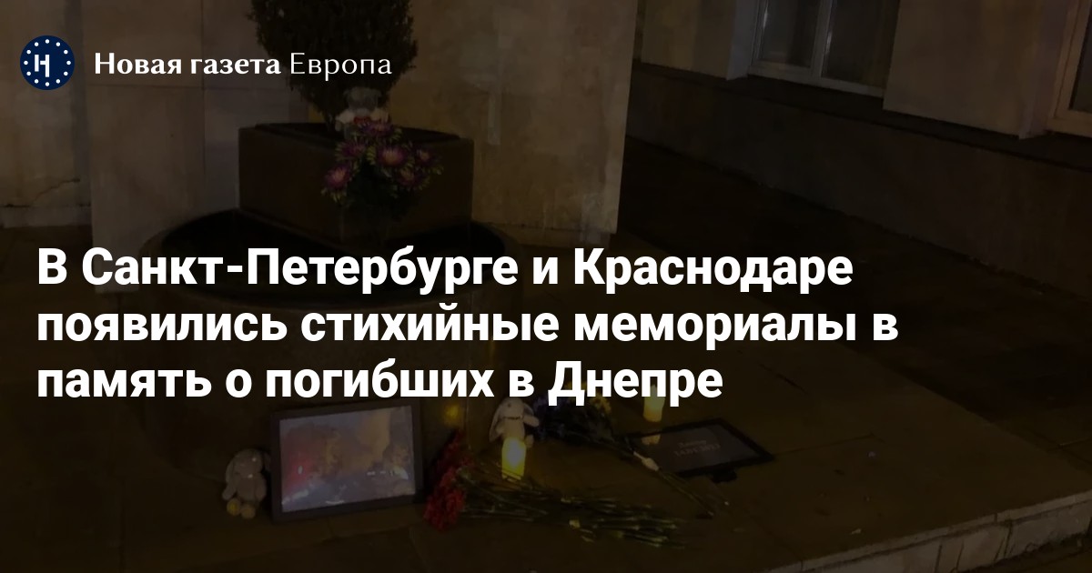 В Санкт-Петербурге и Краснодаре появились стихийные мемориалы в память о погибших в многоэтажке в Днепре.