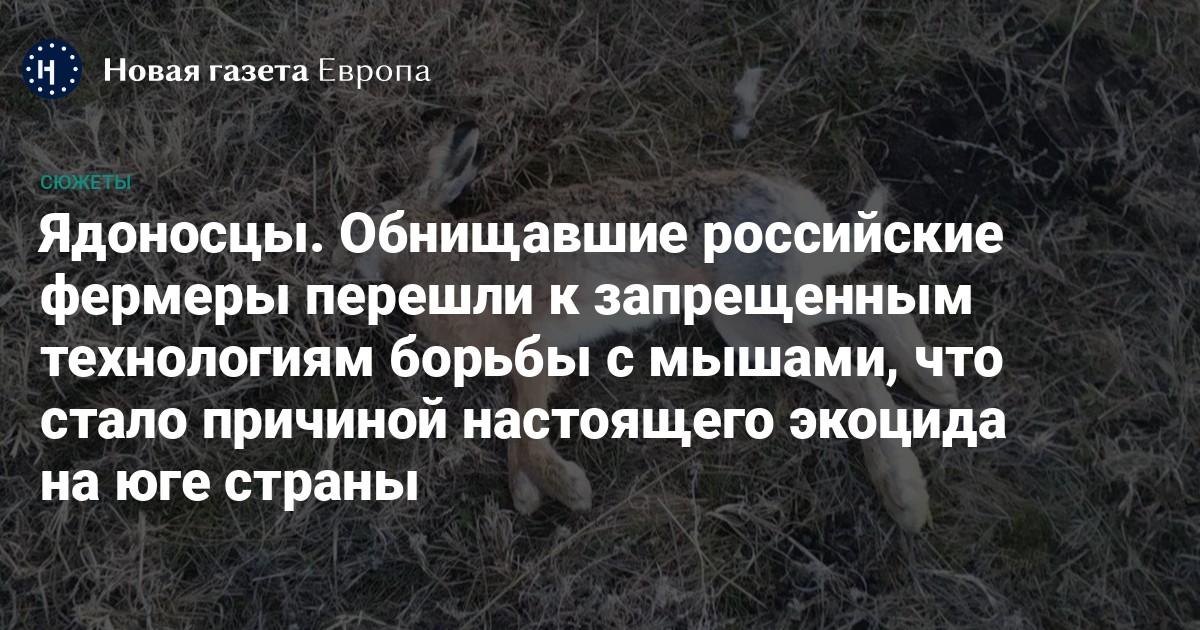 — В Ставропольском крае не первый год наблюдается массовая гибель зайца-русака, фазана, серой куропатки, серого журавля, огаря, шакала, волка, — рассказал «Новой газете Европа» руководитель общественного экологического движения Native Russian Арсений Филиппов. — Это было связано с неправильной обработкой полей от мышевидных грызунов. Но осенью 2022 года масштаб отравления животных достиг каких-то катастрофических масштабов. Речь идет о гибели десятков тысяч особей.