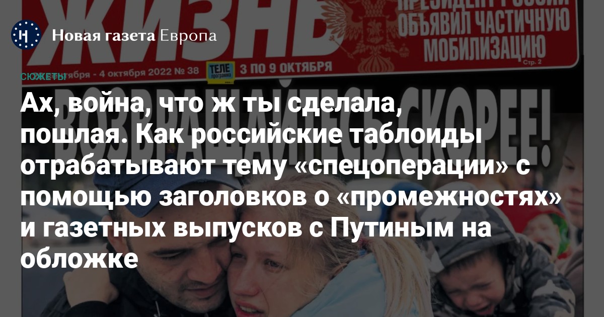 Российские таблоиды, из которых читатели могли узнать свежие сплетни о мире шоу-бизнеса, в России стремительно политизируются. В некоторых изданиях «мочат» уехавших и высказавшихся в поддержку Украины артистов, в других — и вовсе выпускают целые развороты и спецвыпуски, посвященные «спецоперации» и российской армии. «Новая газета Европа» посмотрела выпуски желтой прессы за последний год и попыталась разобраться, как политическая жизнь находит отражение в развлекательных газетах и журналах.