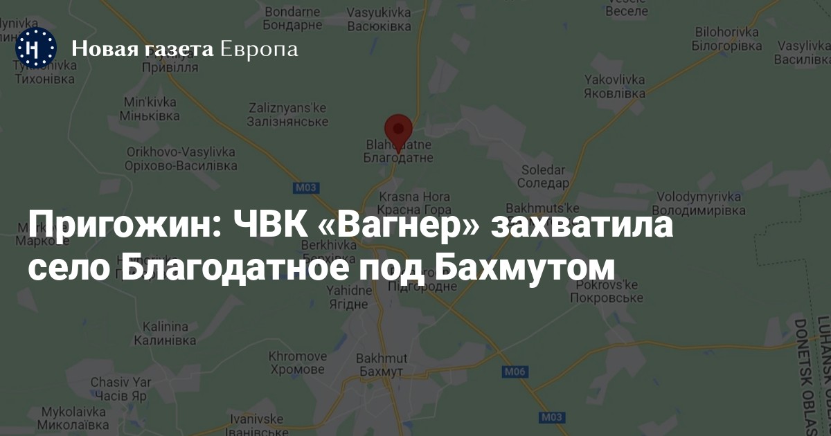 Наемники ЧВК «Вагнер» взяли под контроль село Благодатное под Бахмутом. Об этом заявил глава компании Евгений Пригожин.