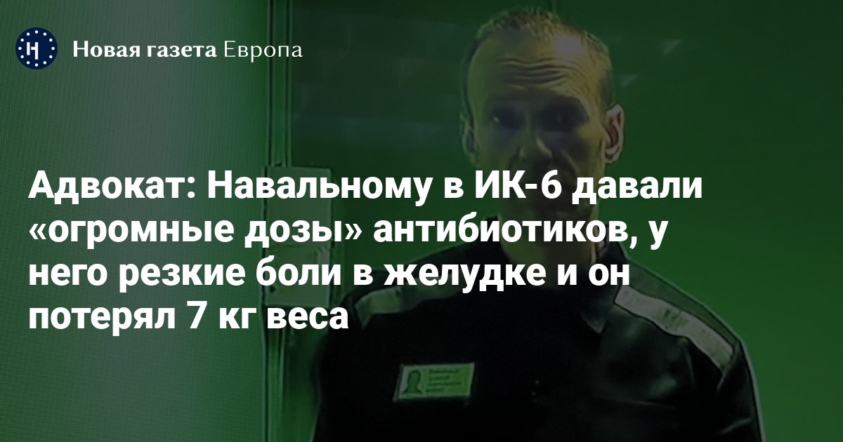 Политику Алексею Навальному, находящемуся в исправительной колонии №6 в Мелехово Владимирской области, давали «огромные дозы» антибиотиков. В результате он получил осложнение на желудок и потерял 7 кг веса, рассказал адвокат политика Вадим Кобзев.