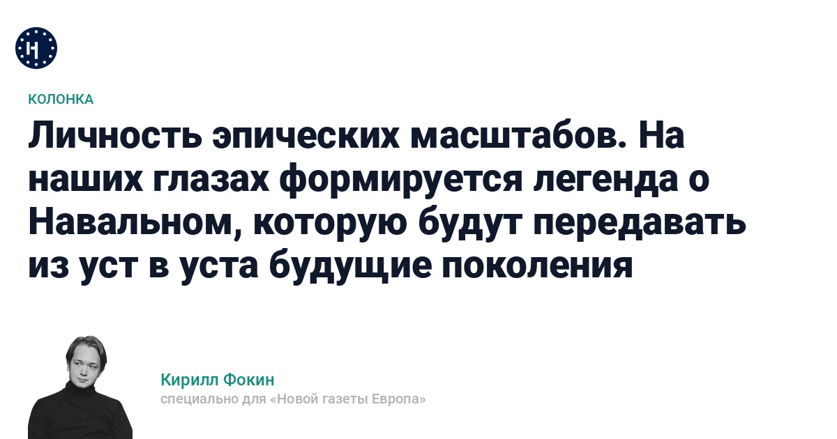 То, что я напишу дальше, может показаться преждевременным, смелым или фантастическим. Но подумайте сами: при любом развитии событии, при абсолютно любом варианте завершения нашей исторической ситуации — будет ли Россия снова авторитарной, или демократической, или распадётся на что-то, или вольётся во что-то — жизнь и судьба Навального, без которых нельзя понять политическую историю страны 2010-х–начала 2020-х, — уже часть истории.