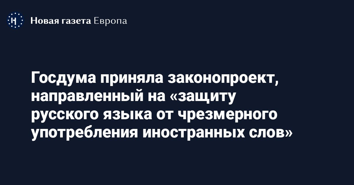 Государственная дума приняла сразу во втором и третьем чтениях законопроект, направленный на «защиту русского языка от чрезмерного употребления иностранных слов». Текст поправок к закону «О государственном языке Российской Федерации» опубликован на сайте нижней палаты парламента.