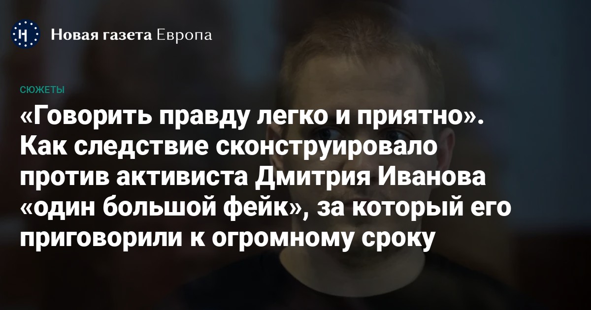 7 марта судья Пугачева вынесла приговор Иванову и признала его полностью виновным за распространение военных «фейков». Она назначила ему 8,5 года в колонии общего режима. Почти такой же срок запрашивала прокурор на прениях. Для адвоката и для самого Дмитрия такой жесткий приговор не стал неожиданностью.