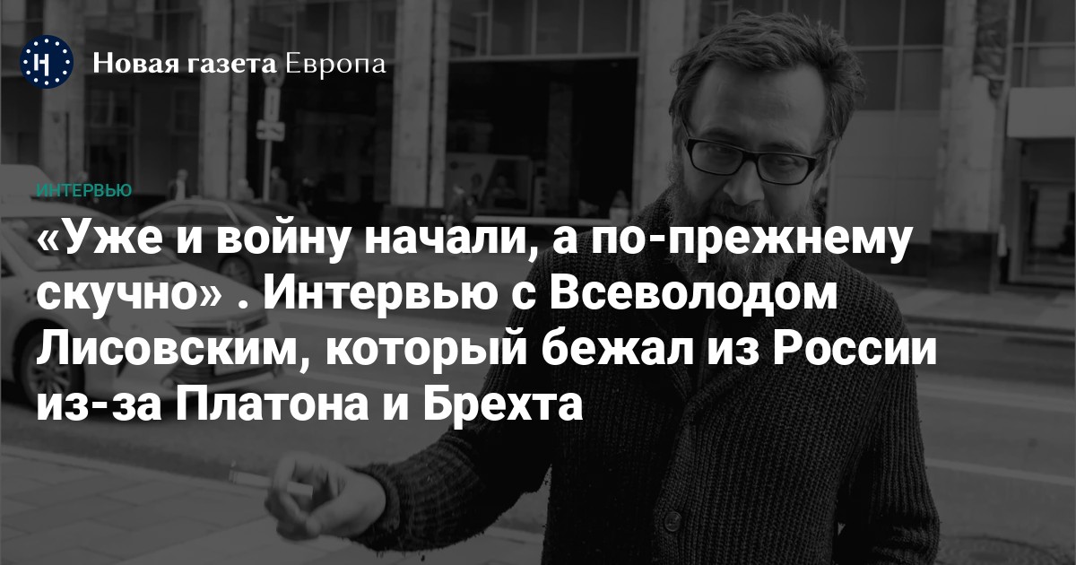 Кейс Всеволода Лисовского, дважды лауреата «Золотой маски», одного из самых странных русских режиссеров, человека, который в разгар милитаристской истерии поставил в Москве уличный спектакль по антифашистским пьесам Брехта — это крушение мифа о том, что андерграунд не тронут, что это странненькие, убогие, кто их вообще замечает, кому они нужны. Оказывается, нужны. Замечают так, что могут и посадить. После двух отсидок Лисовский уехал, практически бежал в Ереван.