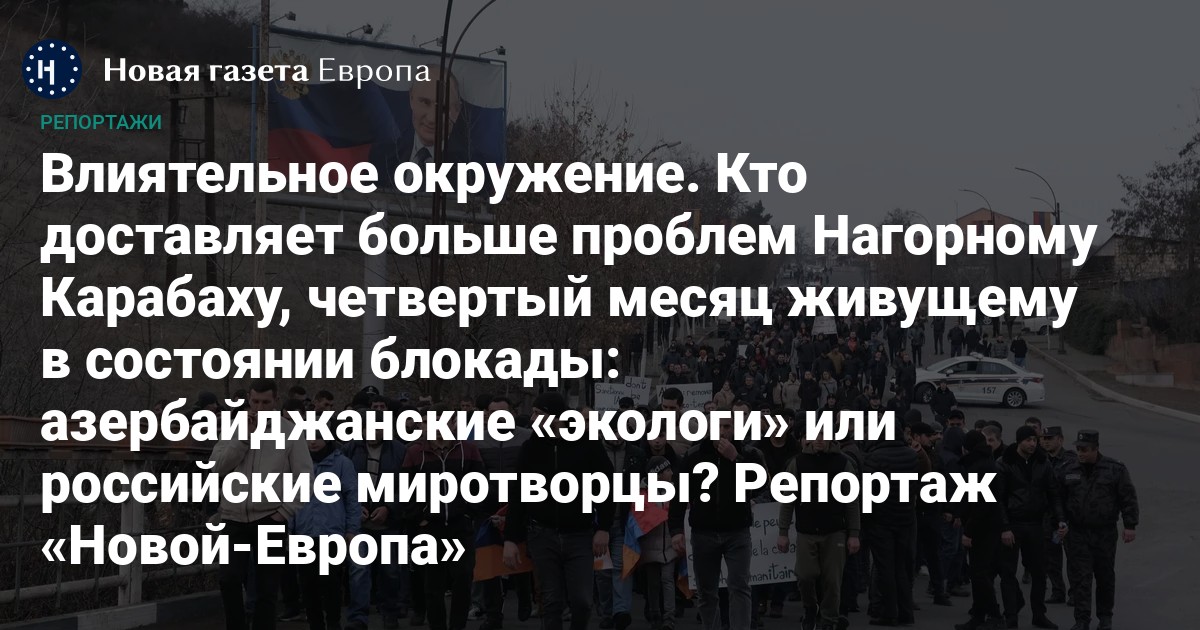 12 декабря 2022 года дорогу перекрыли люди из Азербайджана. Они назвали себя активистами-экологами, которым надо проверить соблюдение норм по защите окружающей среды на двух карабахских рудниках — Дрмбонском и Кашенском. А то, волновались азербайджанские экологи, армяне наверняка добывают там медь и молибден с массой нарушений, а ведь это собственность Азербайджана. Все знают, как заботятся об охране природы в этой стране. Так коридор оказался перекрыт двумя блокпостами — «экологическим» и «миротворческим». Миротворцы не пускают экологов к Степанакерту, но и не мешают им блокировать шоссе.