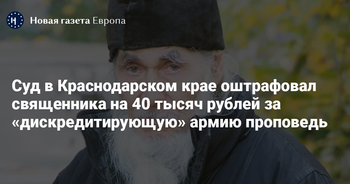 Славянский городской суд Краснодарского края оштрафовал на 40 тысяч рублей священника Виктора Пивоварова по протоколу о «дискредитации» российской армии (ч. 1 ст. 20.3.3 КоАП). Внимание на карточку дела обратила «Медиазона».