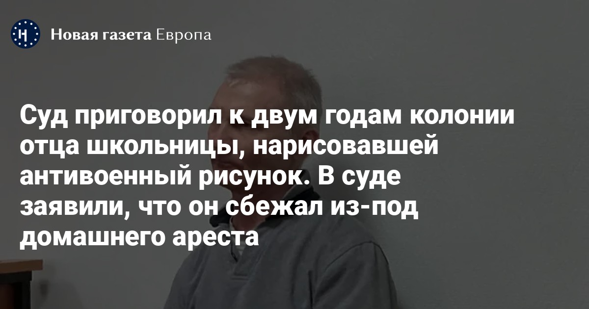 Ефремовский межрайонный суд Тульской области приговорил Алексея Москалева, дочь которого нарисовала антивоенный рисунок в школе, к двум годам колонии общего режима. Его признали виновным в «дискредитации» российской армии (ст. 280.3 УК).