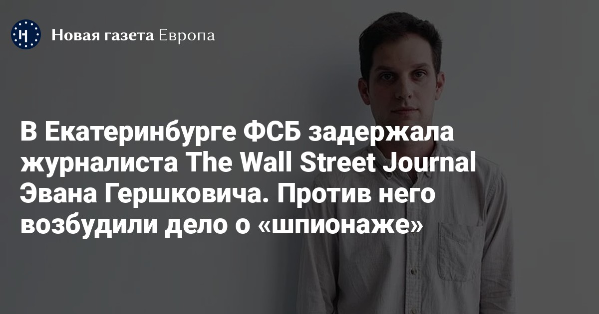 Против журналиста The Wall Street Journal Эвана Гершковича возбудили уголовное дело о «шпионаже», сообщают РИА Новости со ссылкой на ФСБ. Информацию также подтвердили в ТАСС.