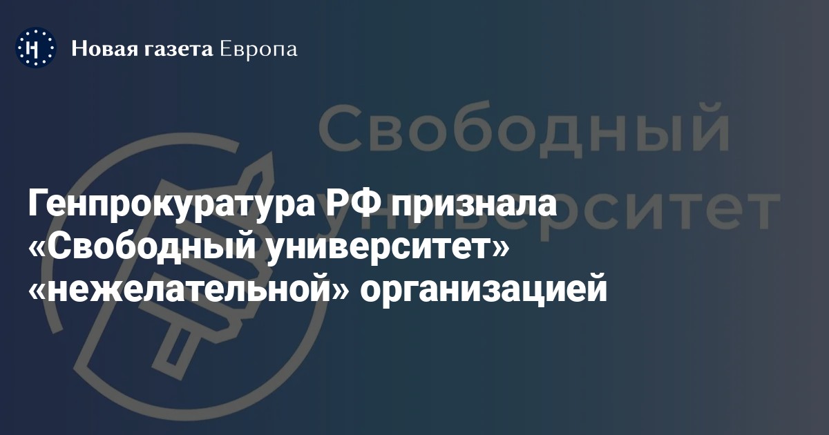 Генпрокуратура РФ признала «Свободный университет» нежелательной организацией. Об этом сообщается в телеграм-канале ведомства.