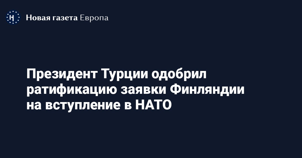 Президент Турции Реджеп Эрдоган утвердил решение парламента Турции о ратификации вступления Финляндии в НАТО. Закон опубликован на сайте официальной газеты Турции, документ датирован 30 марта 2023 года.