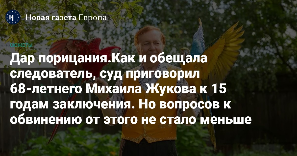 В январе 2023 года я писала о запутанном деле 68-летнего циркового артиста Михаила Жукова из Москвы, которого 13-летняя падчерица обвинила в домогательствах. На днях родственники Жукова сообщили мне, что суд приговорил его к 15 годам строгого режима. Собственно, когда я взялась за тот текст, я и не сомневалась, что так будет: следователь, еще не проведя расследование, сразу предупредила сына Жукова Александра, что посадит его отца. С той лишь разницей, что если Александр будет настаивать на добросовестном проведении расследования, она посадит Михаила на 16 лет («как уже посадила недавно другого педофила»), а если не будет «мешать», то на 10.