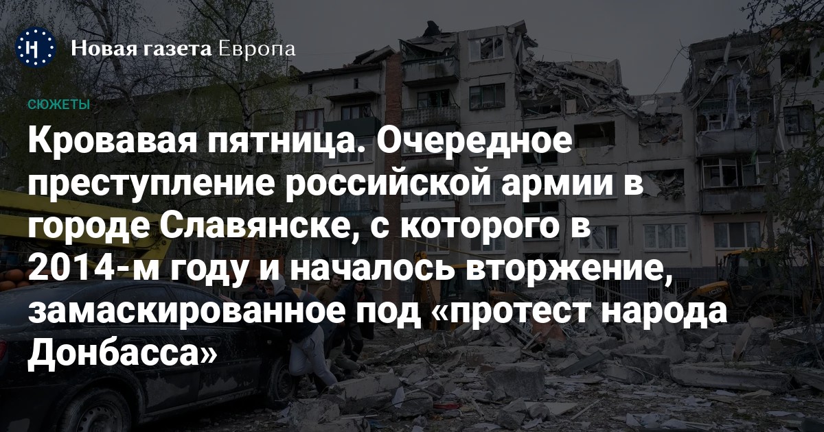 Когда я передаю этот текст, уже известно об 12 погибших в результате ракетного обстрела Славянска. Не менее семи «С-300» целенаправленно ударили по жилому кварталу — в январе этого года так же поступили с Днепром. Среди погибших двое детей, 23 человека получили ранения. Под завалами по-прежнему остаются люди, спасательные службы продолжают разбирать руины. Повреждения получили 5 многоэтажек, 5 частных домов, школа, база отдыха, административное здание, магазин… Кажется, за пределами Украины такая статистика «пробивает» читателя все меньше. Даже если подчеркнуть, что для православных минувшая пятница была страстной, то есть, связанной со страданиями во имя бессмертия человечества.