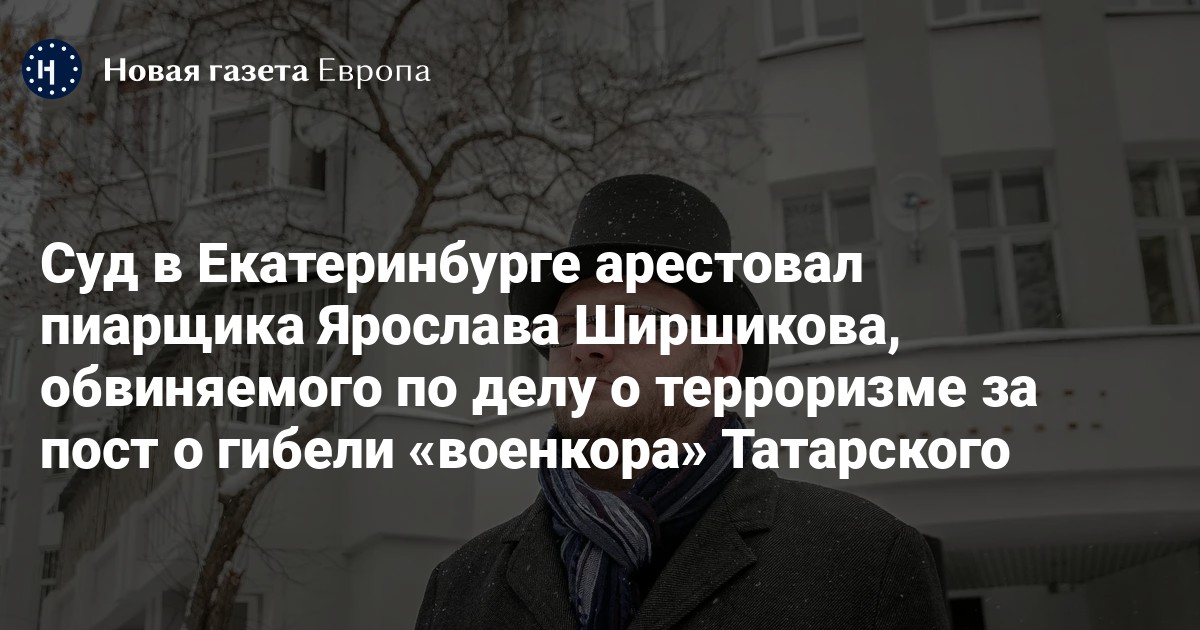 Суд в Екатеринбурге арестовал пиарщика Ярослава Ширшикова, обвиняемого по делу о терроризме за пост о гибели «военкора» Татарского