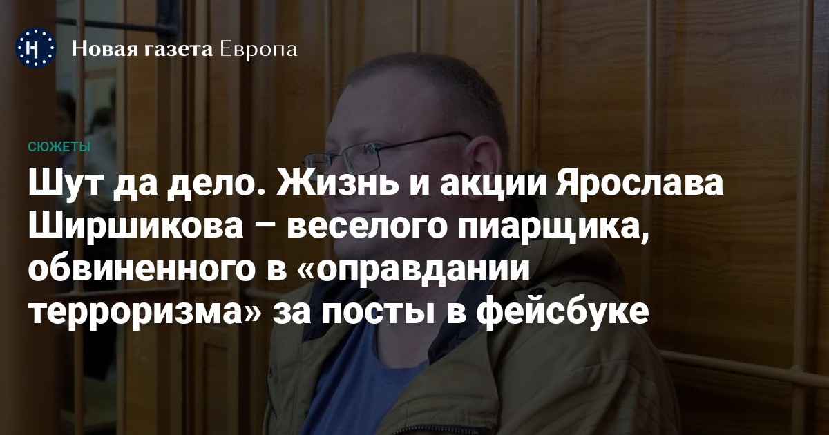 В СИЗО на два месяца — такую меру пресечения избрал Верх-Исетский районный суд Екатеринбурга известному местному пиарщику и активисту Ярославу Ширшикову. 18 апреля у него дома прошел обыск, после чего сотрудники ФСБ увезли его для следственных действий. Ширшикову предъявили обвинение в оправдании терроризма за посты в фейсбуке, где блогер высказывал свое отношение к погибшим Дарье Дугиной и Владлену Татарскому. Теперь екатеринбуржцу грозит до семи лет колонии. «Новая-Европа» рассказывает, кто такой Ширшиков и какими яркими пиар-акциями он известен в своем городе.