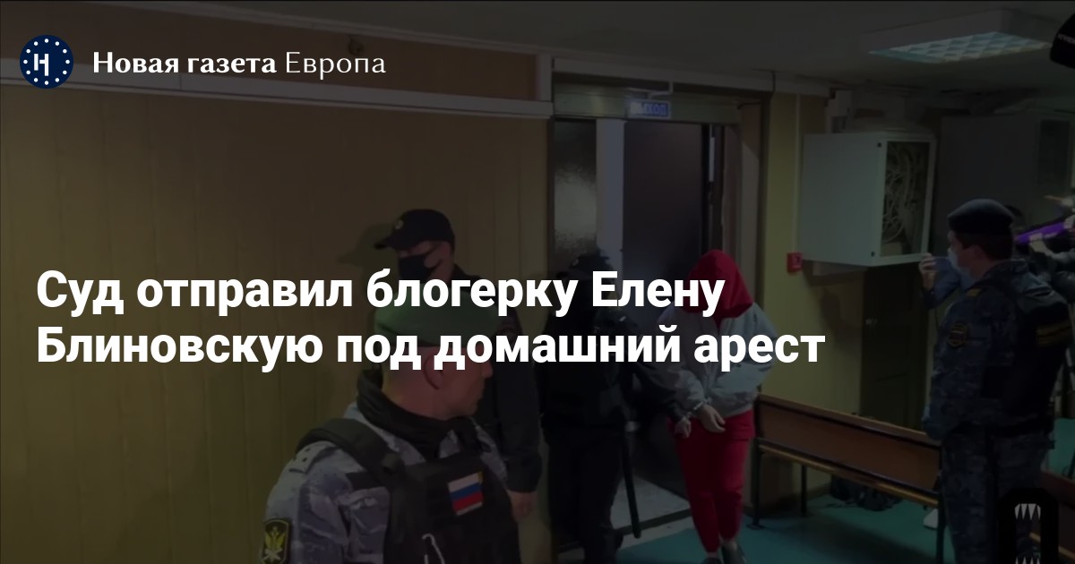 Пресненский районнй суд Москвы избрал в качестве меры пресечения для блогерки Елены Блиновской домашний арест сроком на два месяца. Об этом сообщает «Медиазона».