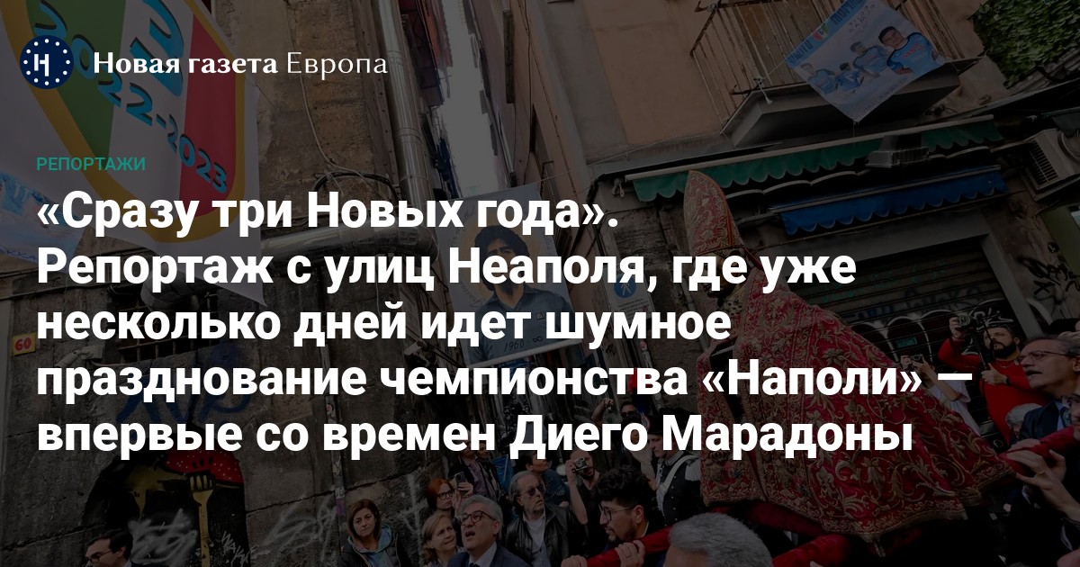 За сто лет истории футбольного клуба «Наполи» был чемпионом Италии всего дважды — в 1987 и 1990 годах. И оба раза при участии Диего Марадоны, который стал для неаполитанцев — даже по итальянским мерками заядлых футбольных фанатов — чем-то вроде местного божества. Фото аргентинца в городе встречается повсеместно, как и бело-голубые цвета самого «Наполи» накануне третьего чемпионства клуба.