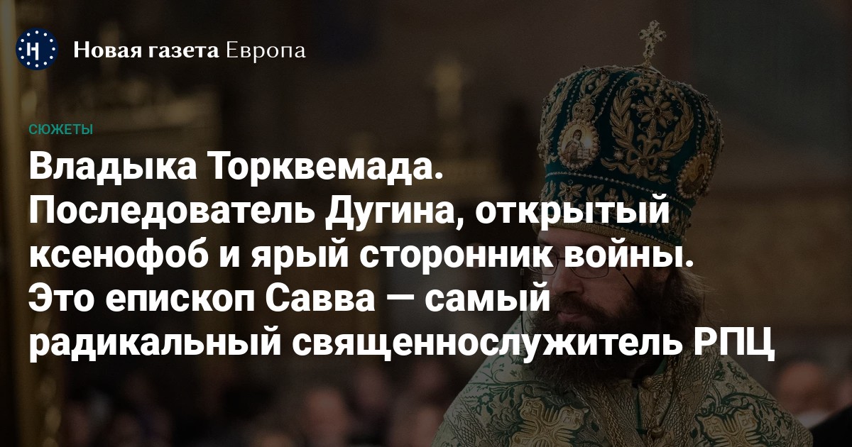 Должность епископа Саввы в аппарате патриархии вообще-то не предполагает публичности. Изучать жалобы на епископов и проводить досудебное следствие лучше в тиши кабинета, с использованием защищенных каналов связи. Тем удивительнее публичная активность этого иерарха, которую он развил после 24 февраля 2022 года. Похоже, Савва старается «не за страх, а за совесть», выражая весьма радикальную даже по меркам РПЦ позицию по вопросам войны и мира, настоящей и грядущей судьбы России.