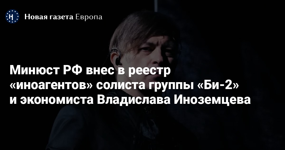 Минюст РФ внес в реестр «иноагентов» солиста группы «Би-2» Леву (Егора Бортника) и экономиста Владислава Иноземцева.