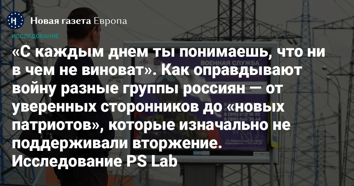 В мае Лаборатория публичной социологии опубликовала результаты второго этапа исследования о том, как война воспринимается в России. Аналитический отчет основан на 88 глубинных интервью с россиянами, которые не считают себя противниками войны.