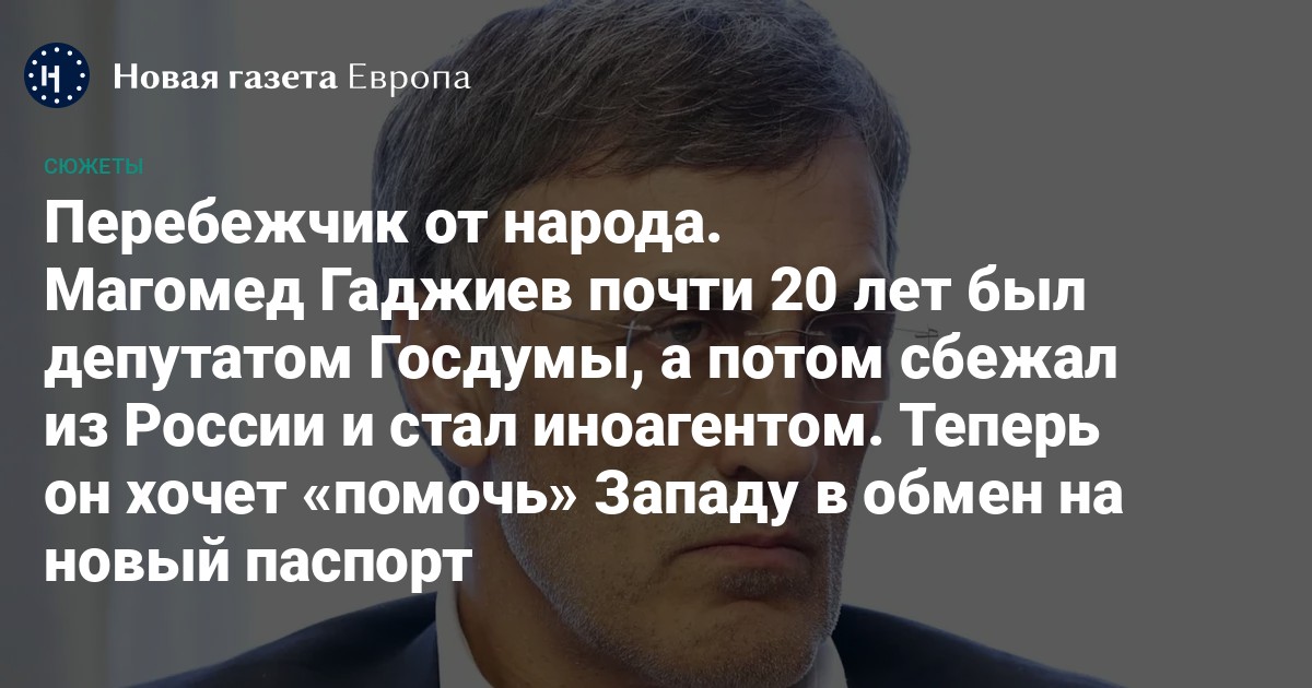 После потери места в Госдуме в 2021 году бывший депутат Магомед Гаджиев уехал из России в Дубай. А в мае 2023 года Гаджиева — соавтора первого закона об иноагентах — самого признали иностранным агентом. Минюст посчитал, что тот, «находясь за пределами Российской Федерации, с целью получения иностранного гражданства выражал готовность сотрудничать с иностранными источниками» и «заявлял о поддержке властей Украины».