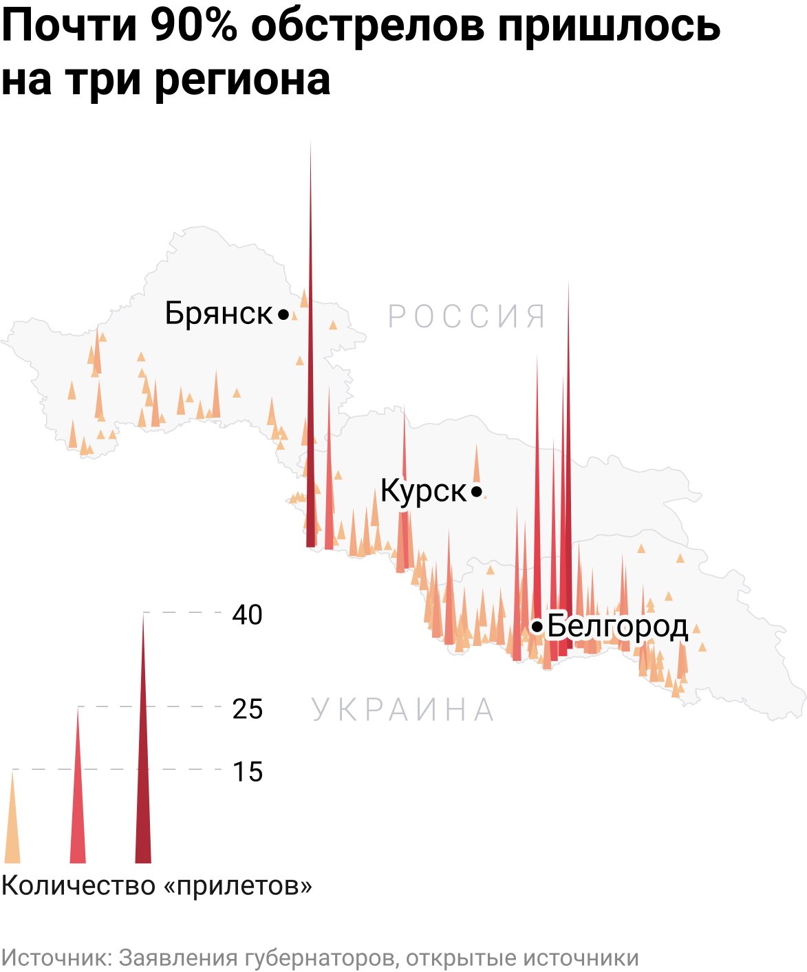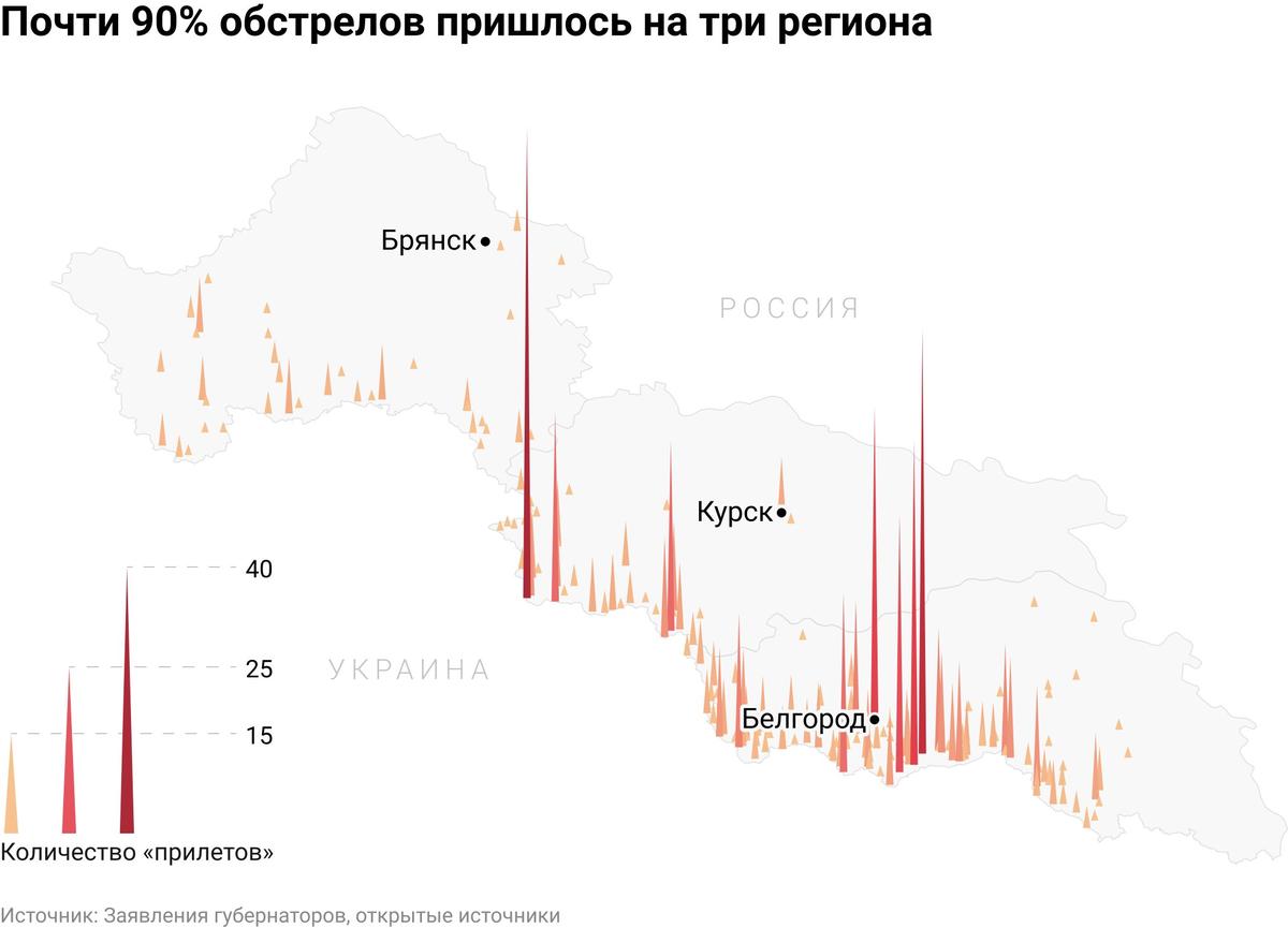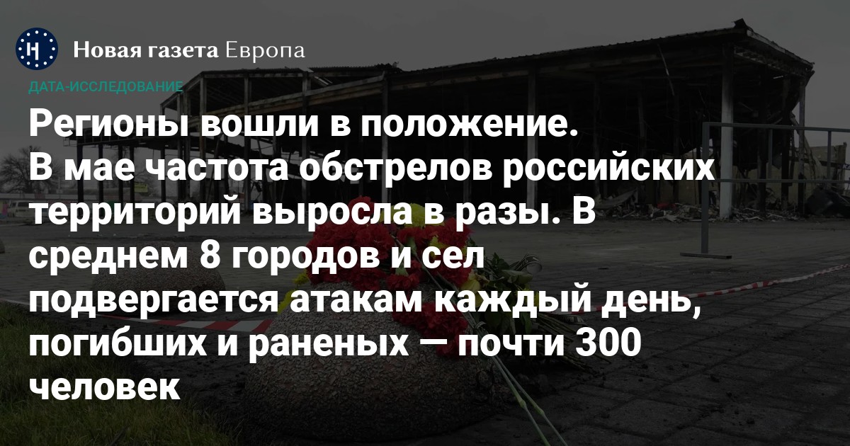 В мае главы регионов сообщили о рекордных 281 обстрелах — это в четыре раза больше, чем месяц назад. В среднем атакам каждый день подвергается 8 населенных пунктов. Целями «прилетов» уже стали более двух тысяч гражданских и промышленных объектов, среди которых нефтебазы, московские многоэтажки и купол Кремля.