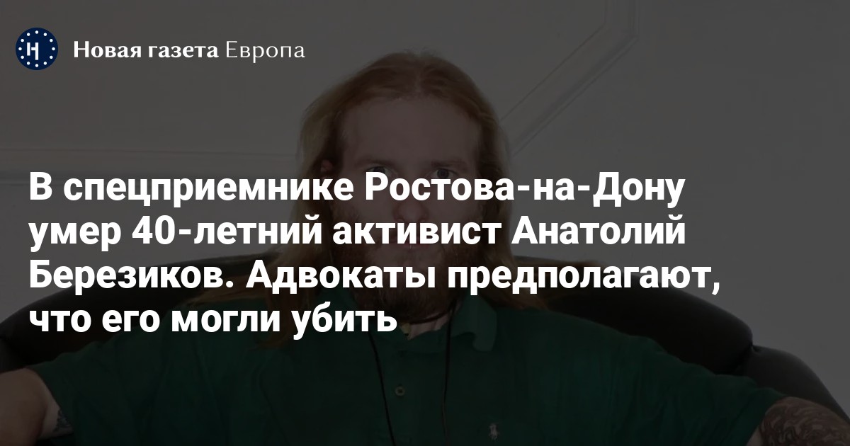 В спецприемнике Ростова-на-Дону умер 40-летний активист Анатолий Березиков. Адвокаты предполагают, что его могли убить