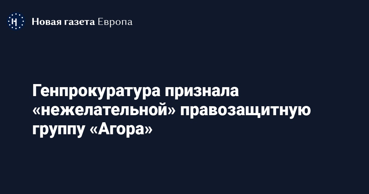 Генпрокуратура признала «нежелательной» деятельность в России международной правозащитной группы «Агора», говорится в телеграм-канале ведомства.