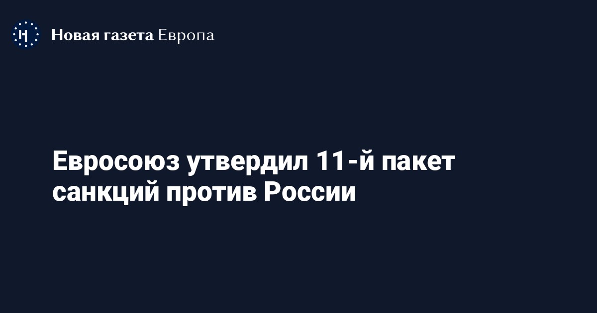 Европейский союз утвердил 11-й пакет антироссийских санкций. Об этом сообщается на сайте Европейской комиссии.