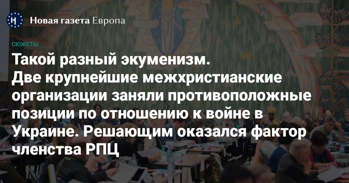 Отчасти ВСЦ оправдывает эти ожидания: на генассамблее в Карслруэ в сентябре прошлого года совет проголосовал против исключения из организации РПЦ и принял мягкую резолюцию о военных действиях РФ в Украине. По сути, документ уравнивает действия ВС РФ и ВСУ. ВСЦ проигнорировал обращения Всеукраинского совета церквей с требованием осудить преступления против свободы вероисповедания на контролируемых Россией территориях Украины. Более того, тогдашний и. о. генсека ВСЦ румынский протоиерей Иоанн Саука посетил Москву в середине октября 2022 года, где поблагодарил Кирилла за переписку с советом. Он назвал позицию ВСЦ «активной, но нейтральной». Как раз в те дни Кирилл ввел в РПЦ обязательную богослужебную молитву о «победе русского оружия». Стоит ли удивляться, что ВСЦ никак не отреагировал на репрессии против московского священника, заменившего в этой молитве слово «победа» на слово «мир»? Заклинания ВСЦ о «миротворчестве» после этого звучат немного фальшиво.