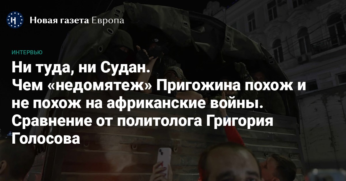 То, что произошло в России, отдаленно, но всё-таки в гораздо большей степени напоминает события в Судане, происходящие сейчас. Там идут боевые действия между Вооруженными силами Судана и Силами быстрого реагирования. В России до боевых действий не дошло, однако эта логика — столкновение между официальными вооруженными силами и военными формированиями, действующими независимо от них, — реализовалась в полном объеме.