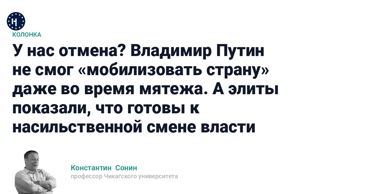 Лично для Путина этот день стал особенным ударом по репутации: ни в Ростове-на-Дону, ни в Воронеже, ни в Москве никто не вышел с протестом против вызова его власти. В течение нескольких часов после его утреннего обращения другие российские политики не сказали ни слова поддержки, а мэр Москвы Собянин, премьер-министр Мишустин, министр иностранных дел Лавров и вовсе скрылись от камер и микрофонов. Эта пауза четко говорит о том, что российская политическая элита готова к смене лидера — более того, готова к насильственной смене.