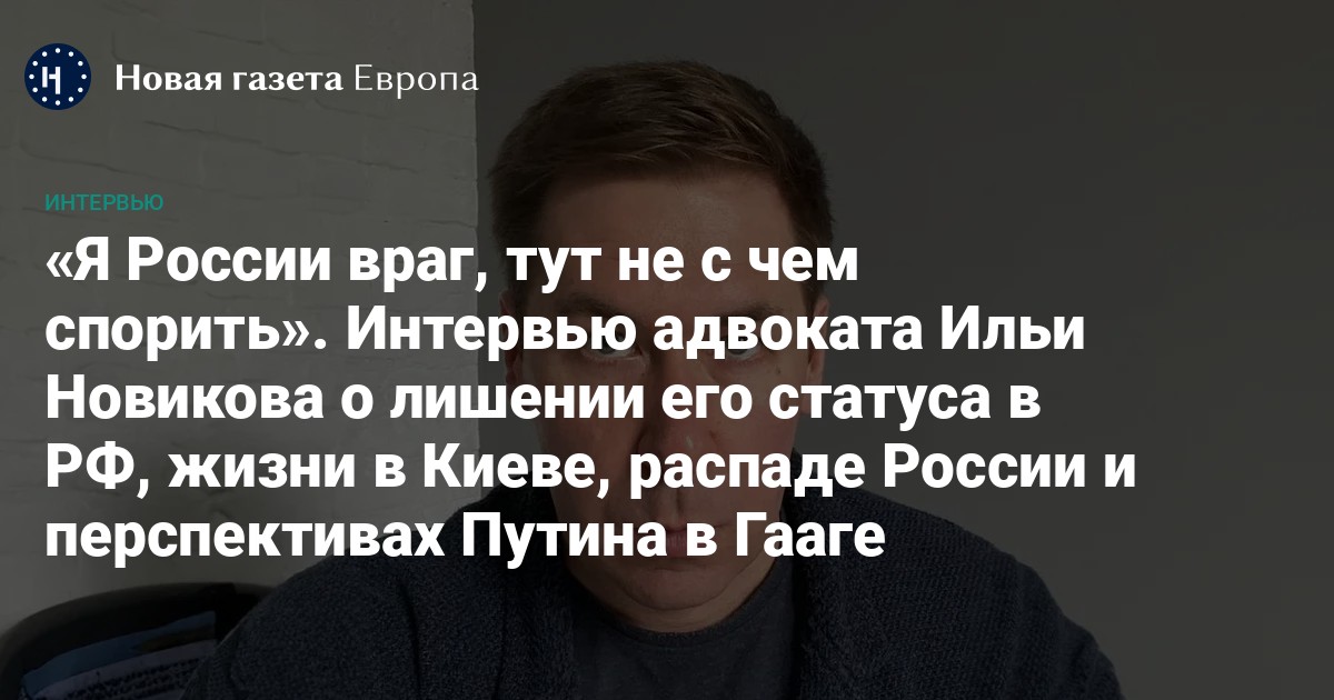 В июне Адвокатская палата Москвы лишила Илью Новикова статуса российского адвоката за высказанное в интервью мнение, что «взрывы складов и мостов — это вещь, которая допустима». Переехавший в Киев и встретивший в нем вторжение армии РФ Новиков не слишком расстроился: возвращаться в Россию, даже в «прекрасную Россию будущего», он не желает. Идеальным сценарием Новиков видит отделение от РФ «крупных кусков, ее демилитаризацию и денацификацию». Новиков сам признаёт, что после начала войны стал врагом России, и будто бы даже недоволен, что статус потерял не за это, а с формулировкой «за недостойное поведение». Журналист Илья Азар поговорил с Новиковым о том, что тот понимает под адвокатской этикой военного времени, в чем смысл работы в российских судах в условиях репрессий и нужно ли применять к судьям и чиновникам РФ смертную казнь.