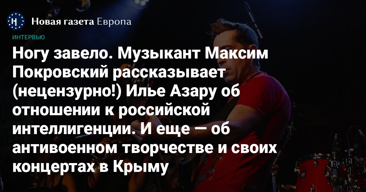 Ни один музыкант не записал с февраля 2022 года столько антивоенных и антисистемных песен, сколько лидер группы «Ногу свело!» Максим Покровский. Это при том, что до самого конца 2010-х Покровского трудно было назвать протестным исполнителем: он участвовал в записи гимна Олимпиады в Сочи, был постоянным участником шоу на Первом канале и даже выступал в аннексированном Крыму. Всё изменил концерт «Шашлык Live», который мэрия Москва специально устроила в одно время с митингом оппозиции. Покровский отказался от участия и погрузился в оппозиционную повестку с головой: поддерживал хабаровские марши в соцсетях, записал песню про митингующих в Минске, а войну в Украине воспринял максимально близко к сердцу.
