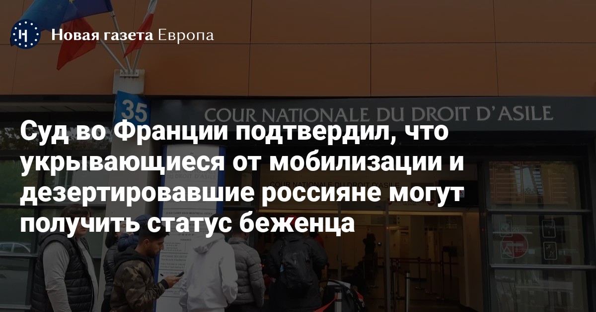 Национальный суд Франции по вопросам убежища (CNDA) подтвердил, что укрывающиеся от мобилизации и дезертировавшие россияне могут получить статус беженца. Об этом сообщается на сайте суда.