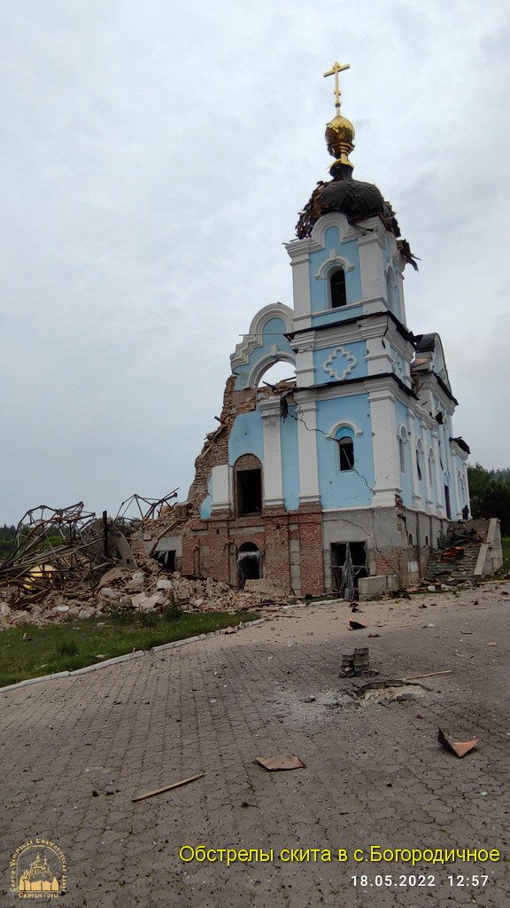 Во время боев за Святогорск в мае прошлого года был до основания разрушен Благовещенский собор скита Святогорской лавры УПЦ в селе Богородичное Донецкой области. Позже наполовину уничтожили и саму лавру, при атаке погибли ее благочинный и несколько монахов.