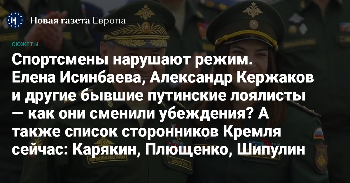 За этими статусами спортсменов (участник Putin Team, доверенное лицо на выборах и т. д.) далеко не всегда стоят глубокие убеждения. Это подтверждает как история Putin Team, так и истории наиболее ярких (с медийной точки зрения) сторонников власти из числа спортсменов. И Исинбаева — далеко не самый показательный пример. Мы собрали короткие сюжеты о спортсменах, которые входили в Putin Team, — далеко не все из них оказались настоящими «мастерами спорта» по лояльности власти, особенно после начала войны.