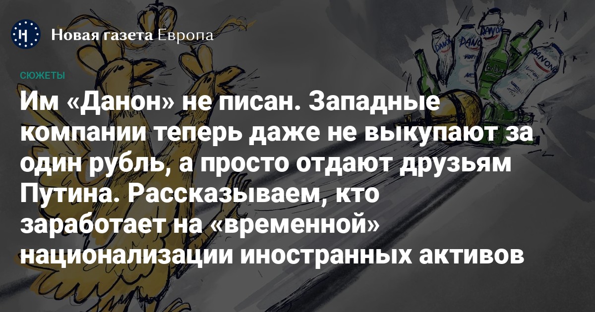 Последние полтора года иностранный бизнес постепенно уходит из России и несет потери, предлагая огромные скидки новым владельцам и выплачивая взносы в российский бюджет. Но похоже, что это не предел: недавно власти сменили стратегию и перешли к «временной» национализации собственности западных инвесторов. Рассказываем, как близкие к Кремлю бизнесмены получили контроль над Danone и Carlsberg и сколько они заработают на новых активах.