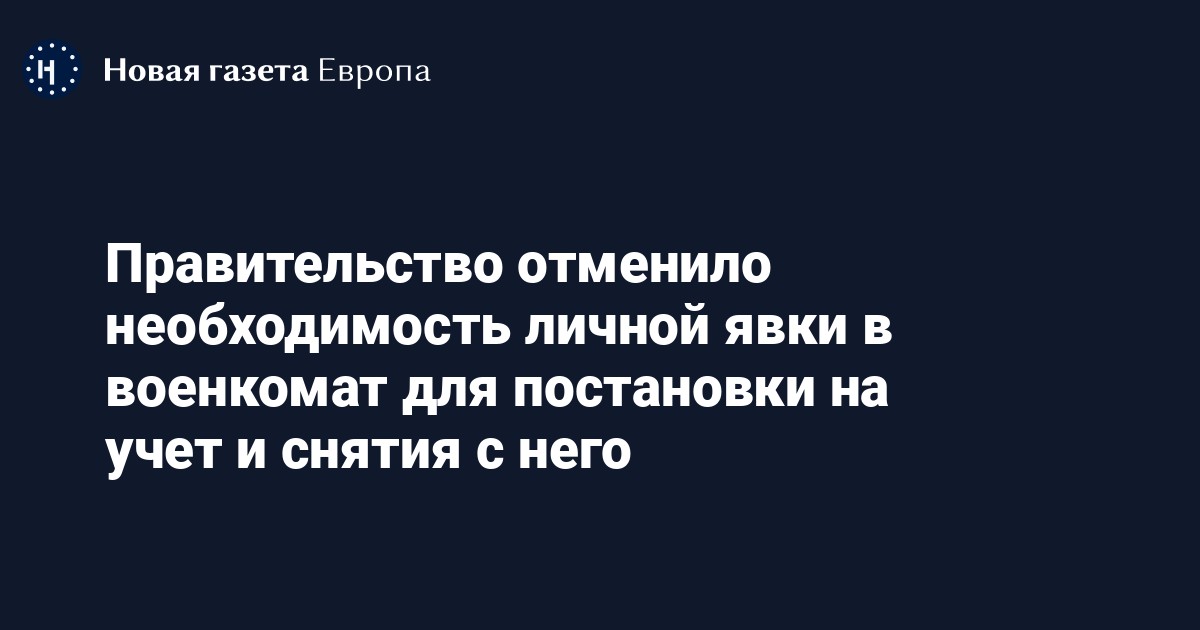 Из изменений следует, что постановка или снятие с учета может осуществляться без личной явки гражданина в военкомат. «Граждане смогут вносить изменения в сведения о себе, размещенные в реестре. Для этого потребуется направить обращение в военкомат через портал госуслуг или придя туда лично»,— сказано в сообщении.