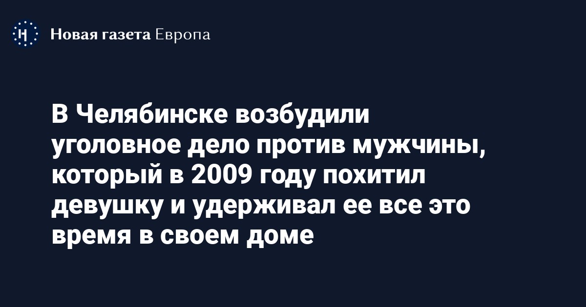 В Челябинске возбудили уголовное дело в отношении местного жителя, который осенью 2009 года пригласил девушку в гости и с тех пор удерживал ее дома. Об этом говорится в релизе Следственного комитета.