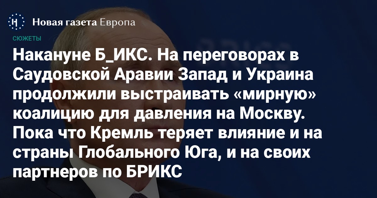 В переговорах в Саудовской Аравии приняли участие важнейшие партнеры России по БРИКС — Бразилия, Индия, Южная Африка и даже Китай. Глава МИД Украины Кулеба подчеркнул, что участие Пекина в переговорах — это «заметный прорыв».