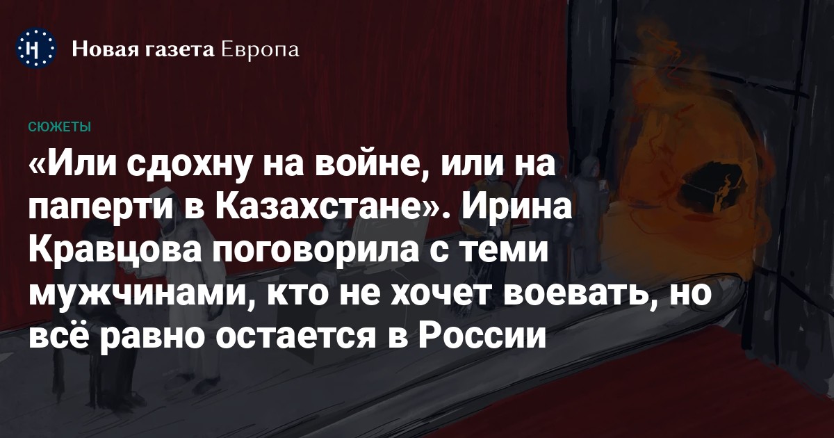 В моем случае ситуация такая: либо сдохну на войне, перед смертью завалив сколько-то невиновных мужиков, таких же, как я, либо на паперти в Казахстане.