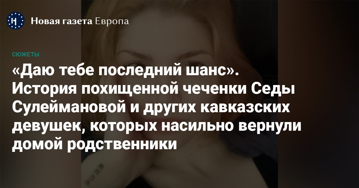 «Новая газета Европа» рассказывает историю Седы Сулеймановой и других девушек из Северного Кавказа, которых вернули родственникам после побега.