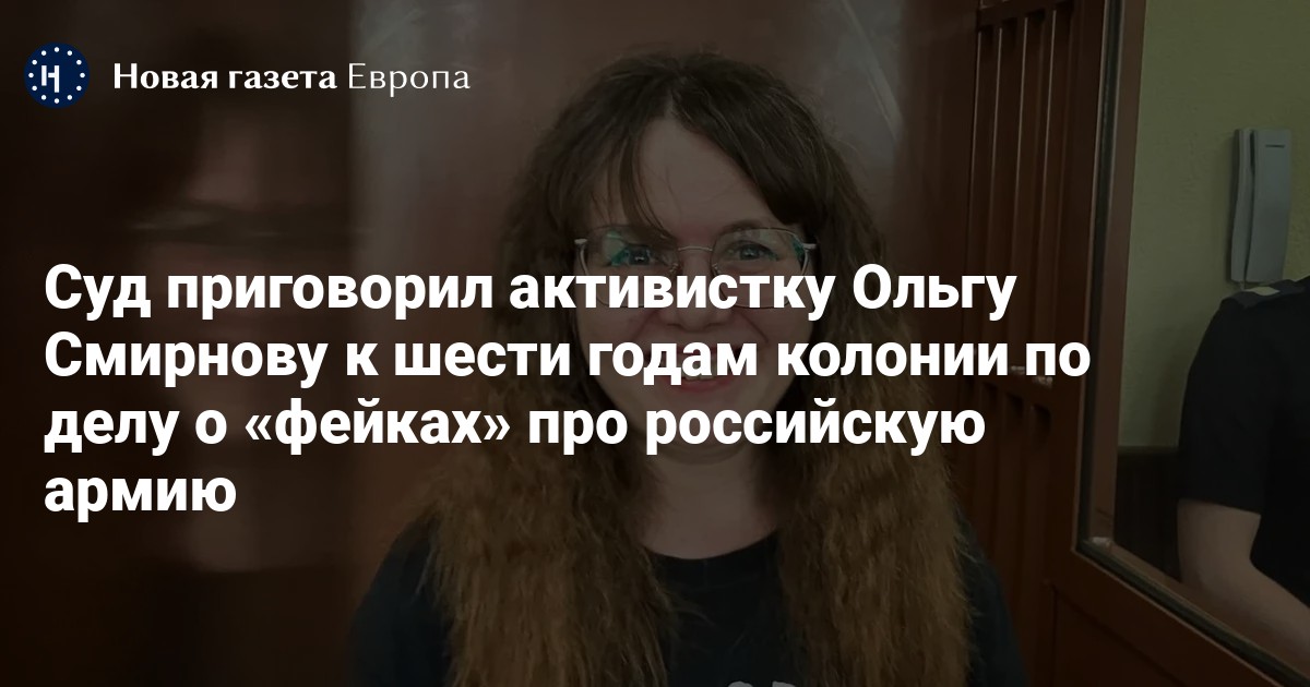 Кировский районный суд Санкт-Петербурга приговорил активистку «Мирного сопротивления» Ольгу Смирнову к шести годам колонии по делу о «фейках» про российскую армию (п. «д» ч. 2 ст. 207.3 УК). Об этом сообщают «Сетевые Свободы».